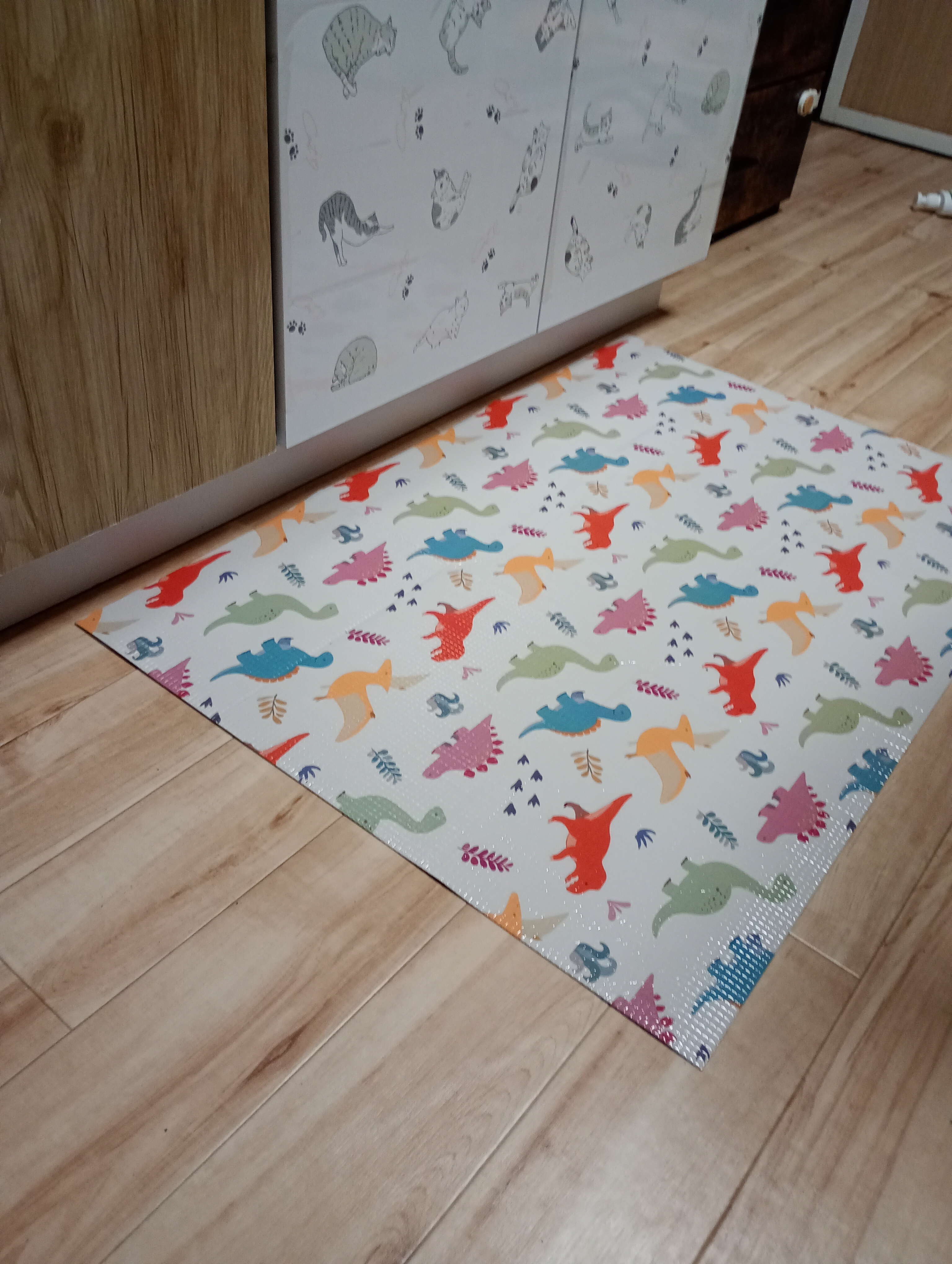 2026/02/11 ほしい募集中 木目調アルミ断熱シート べえちゃん 足元からくる寒さ対策に100均のアルミ断熱レジャーシートを廊下や立ち仕事の多い台所に敷きました。寒くないです!暖かいとは言いませんが床の冷たさは感じません。本来銀色のアルミ断熱シートの上にカーペットを敷くのでしょうが洗濯が面倒なので柄のあるアルミ断熱レジャーシートに辿り着きました。が、ファンシーな恐竜さんです。床と同じような木目調のものやインテリアに馴染むようなデザインのものが欲しいです。