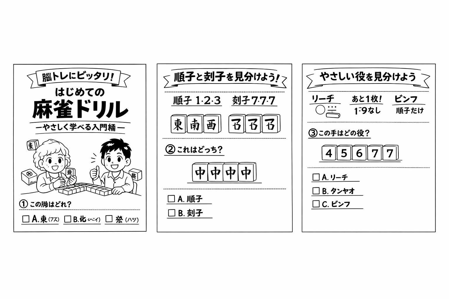 『はじめての麻雀ドリル 〜やさしく学べる入門編〜』を提案します