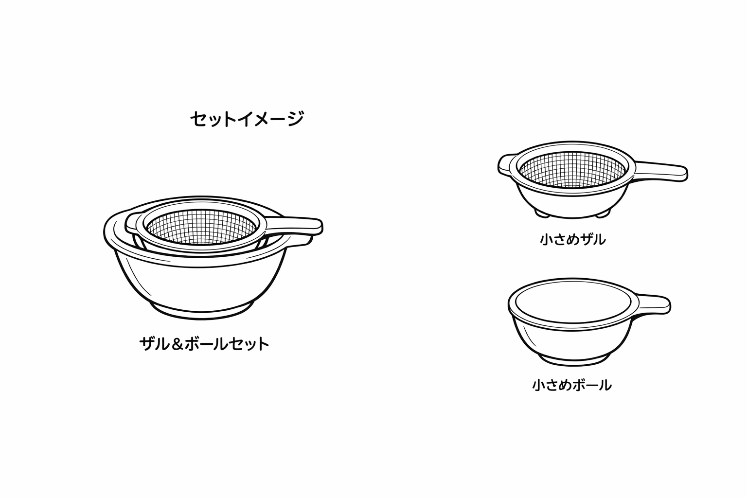 そこで、茶こしより大きく、通常サイズより小さい“中間サイズ”のボール&ザルセットを提案します。