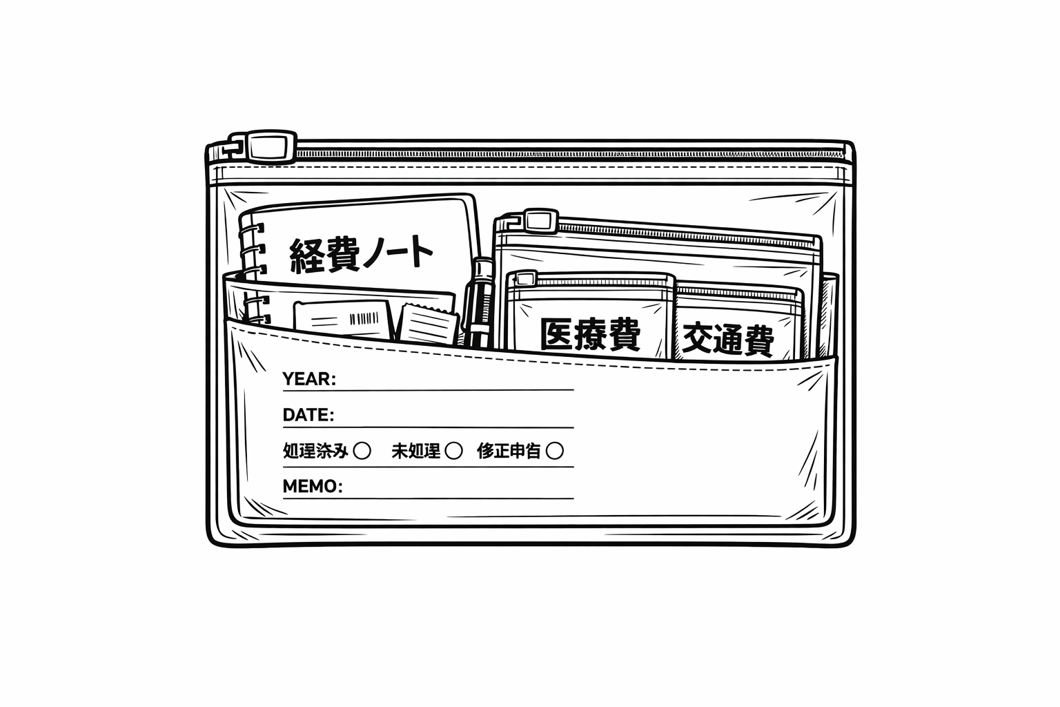 医療費・交通費などの項目ごとに分けられる袋と組み合わせると、