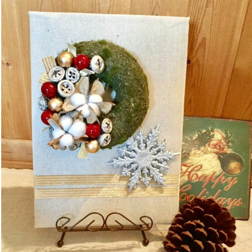 土台が軽いファブリックボードなので、壁にかけてもイーゼルなどで立ててもOK。場所をとらずにクリスマスインテリアが楽しめます。