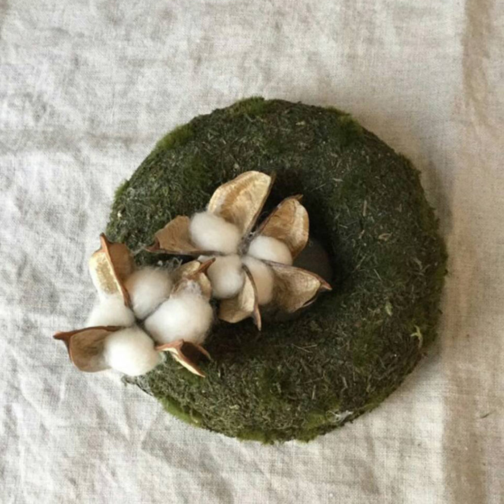 モスリースが落ちてこないように、ファブリックボードにグルーガンでしっかり貼り付けたら完成です。