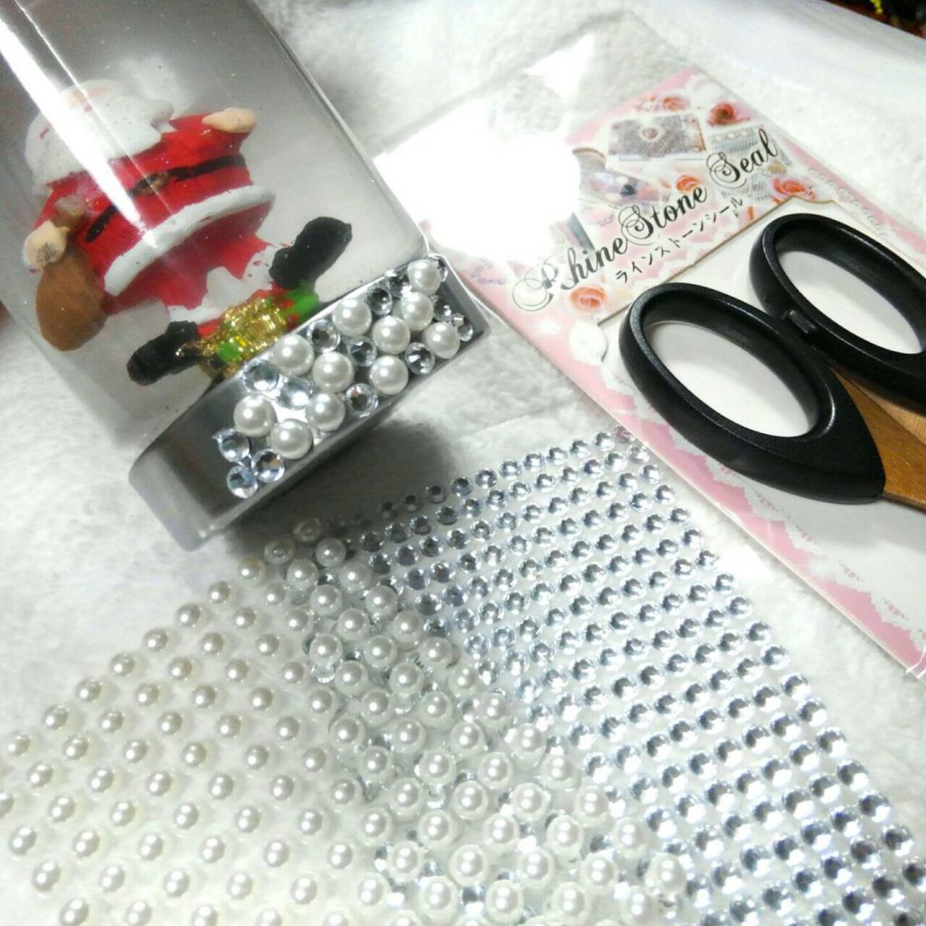 今回はラインストーンをパールをランダムに装飾しました。