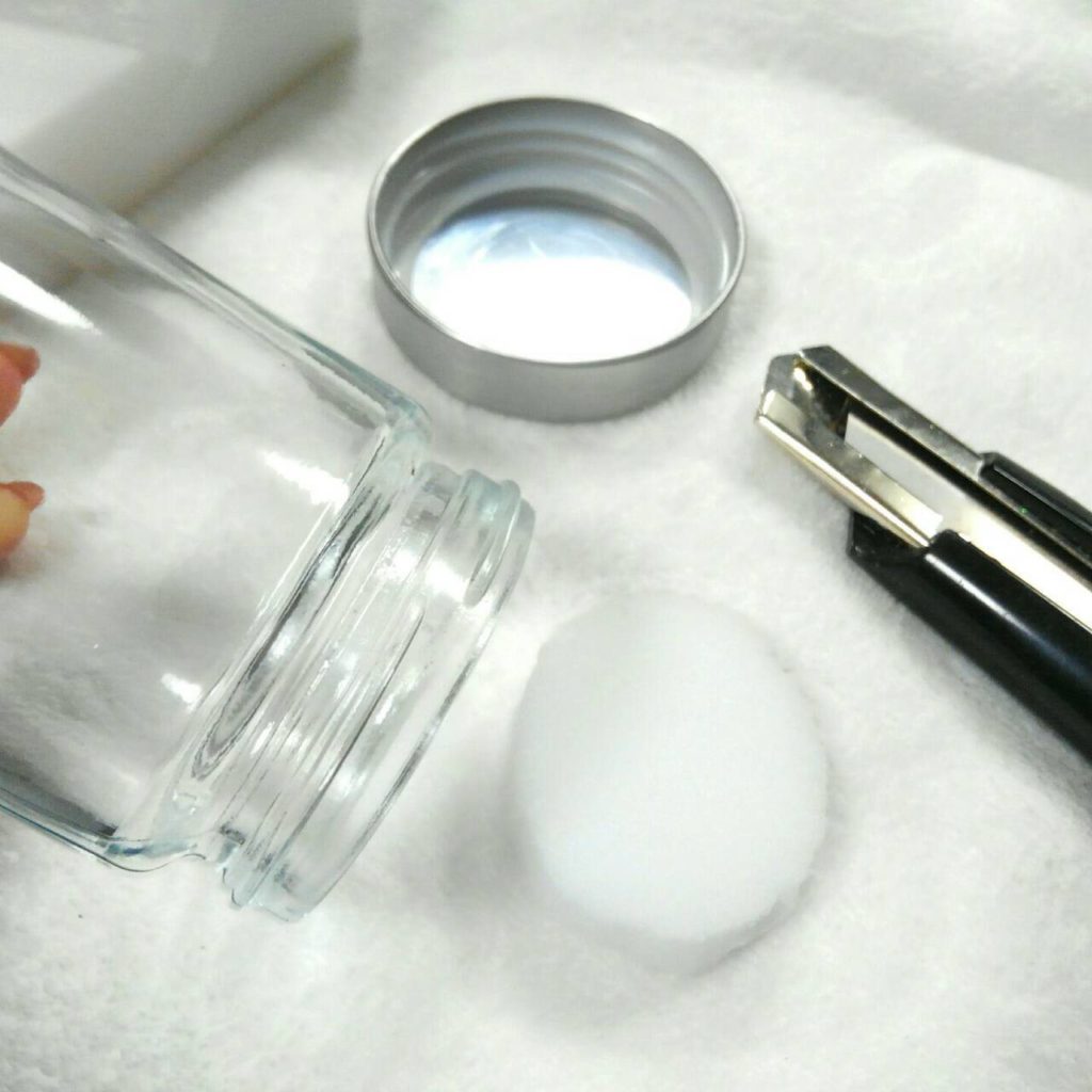 今回用意した瓶はフタに厚みがあるためそのまま使用するとオブジェが隠れてしまいます。