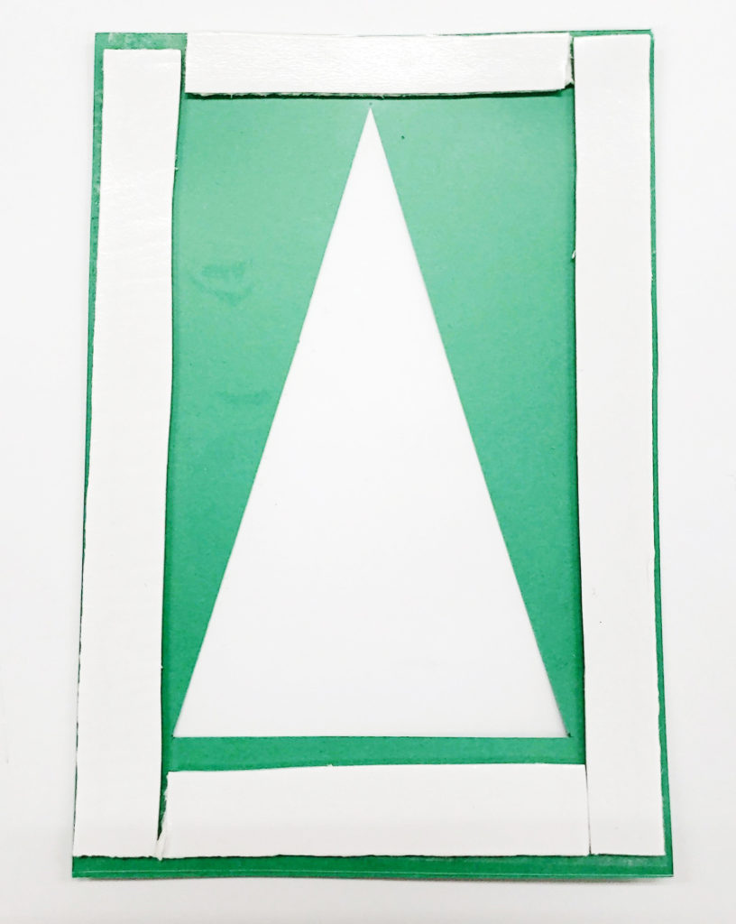 今回はクリスマスツリーの形に切り抜きました。この画用紙が一番表になります。