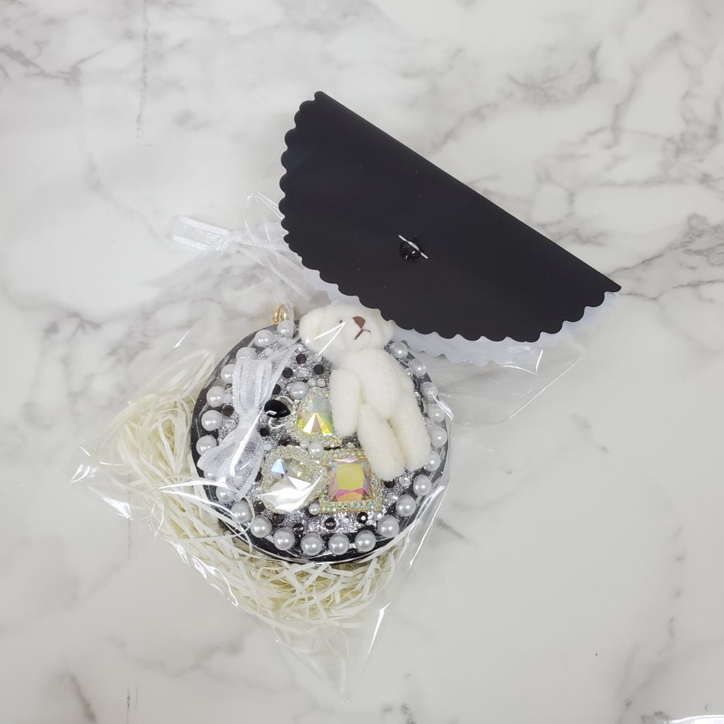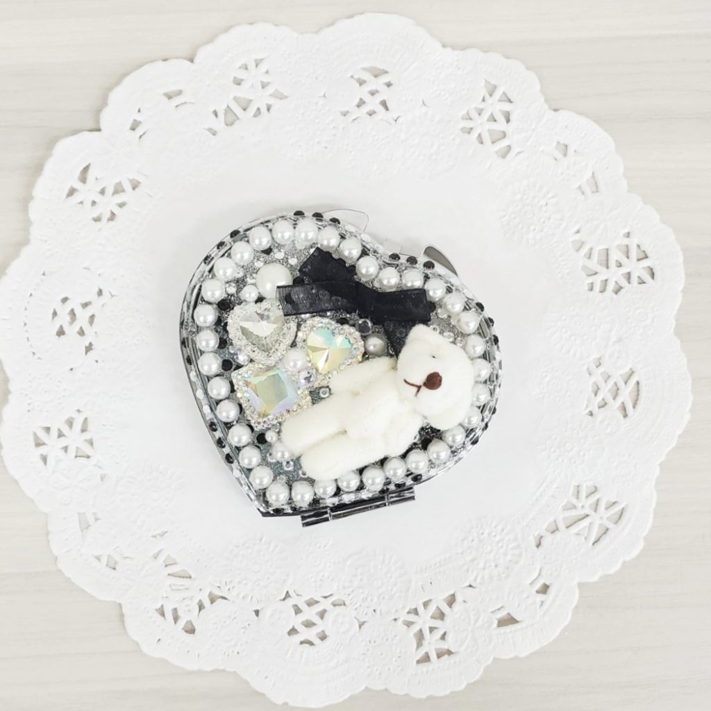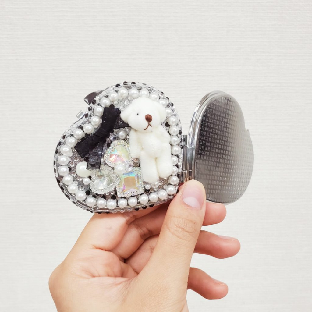 クラフト用のミラーの取り扱いすらない…くまちゃんパーツも手芸やさんで120円くらいで購入しました。