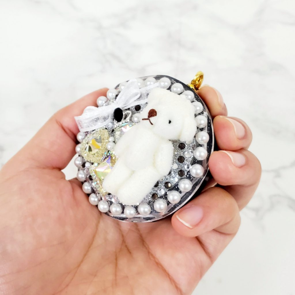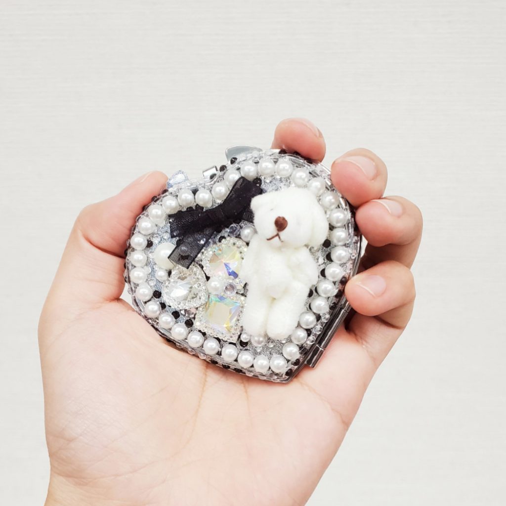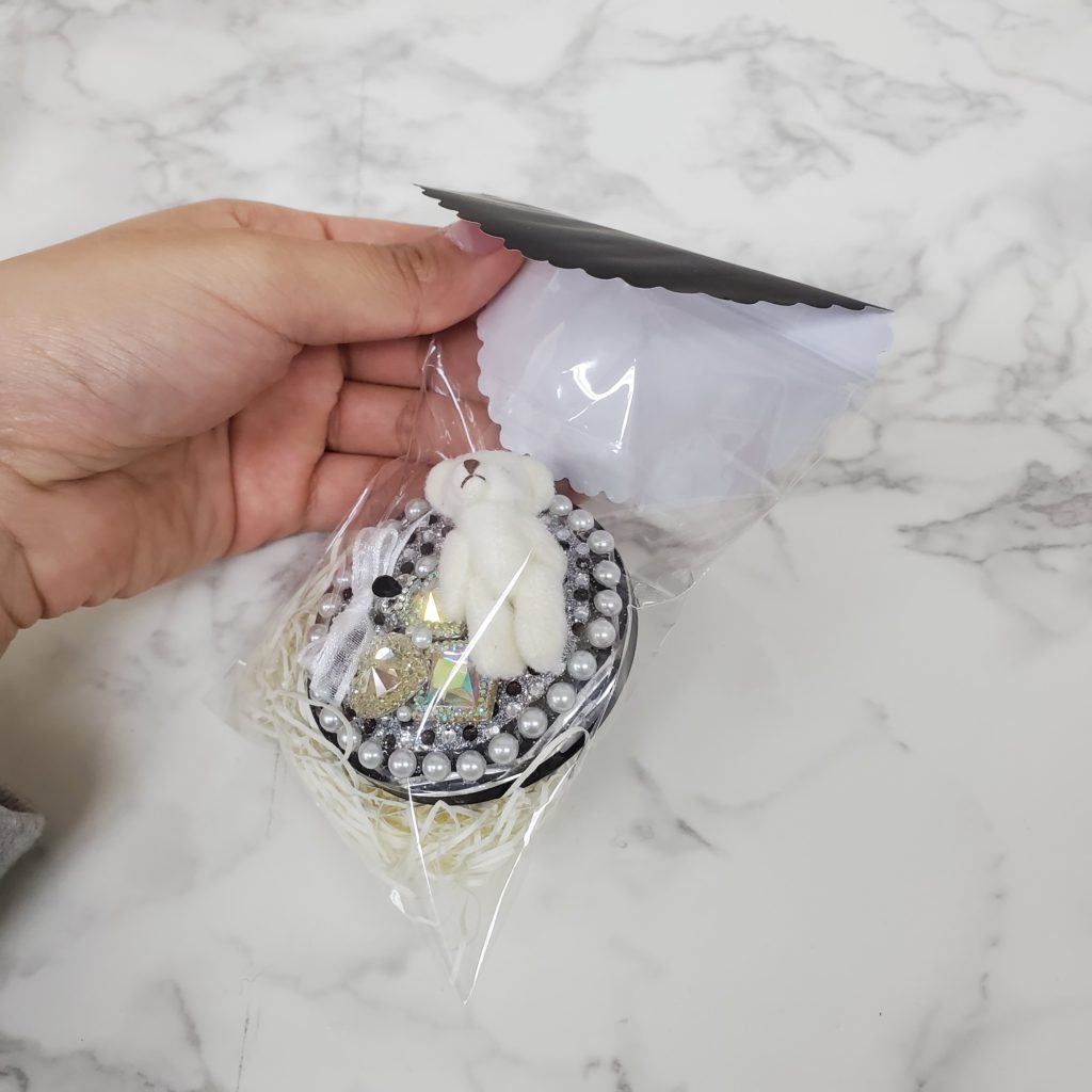 クラフト用のミラーの取り扱いすらない…くまちゃんパーツも手芸やさんで120円くらいで購入しました。