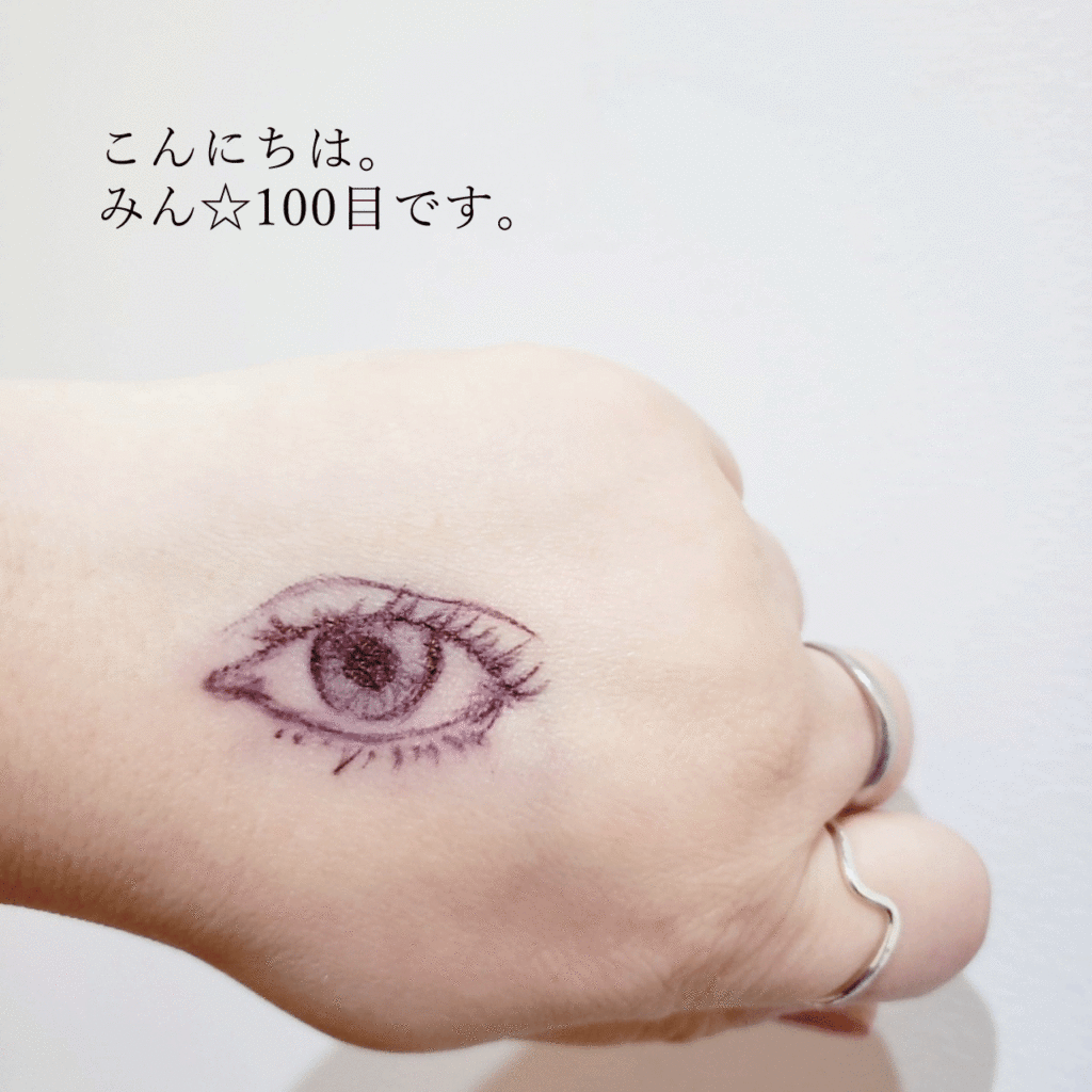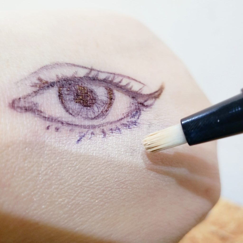 目の印象を大きく変える目じりの尻尾もキレイに描けました。そして完璧なウォータープルーフ!濡らしてこすってもびくともしないアイライン。むしろみん☆100目ちゃんの方が消えかけて慌てたくらい。