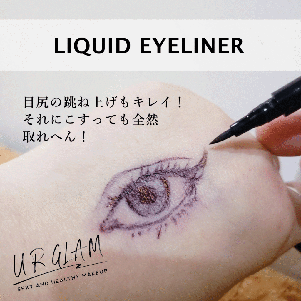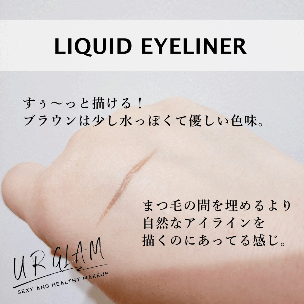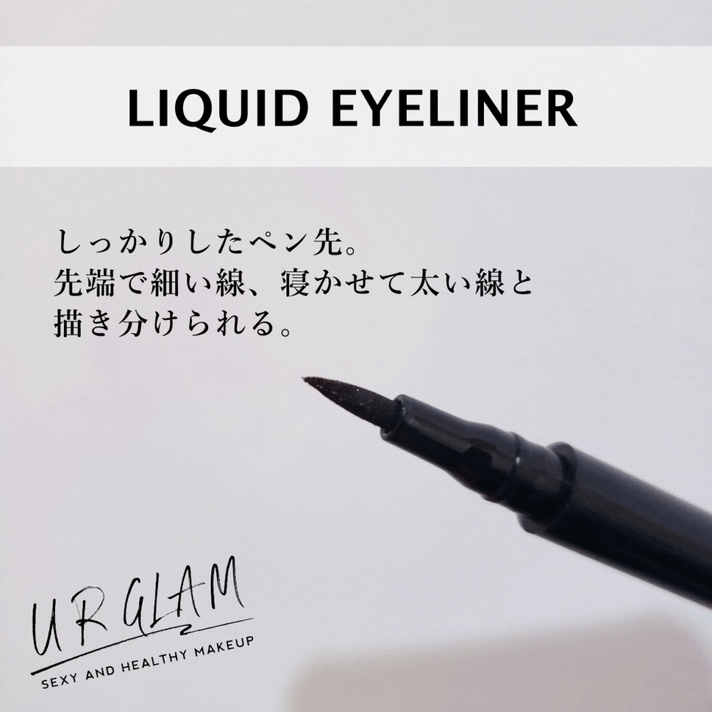 ドバっと出るかと最初の一筆は緊張しましたが、予想に反してさらりとした液体。まっすぐにアイラインが引けるか怪しい私にはこのくらいの「自然」な濃度がちょうどいいです。
