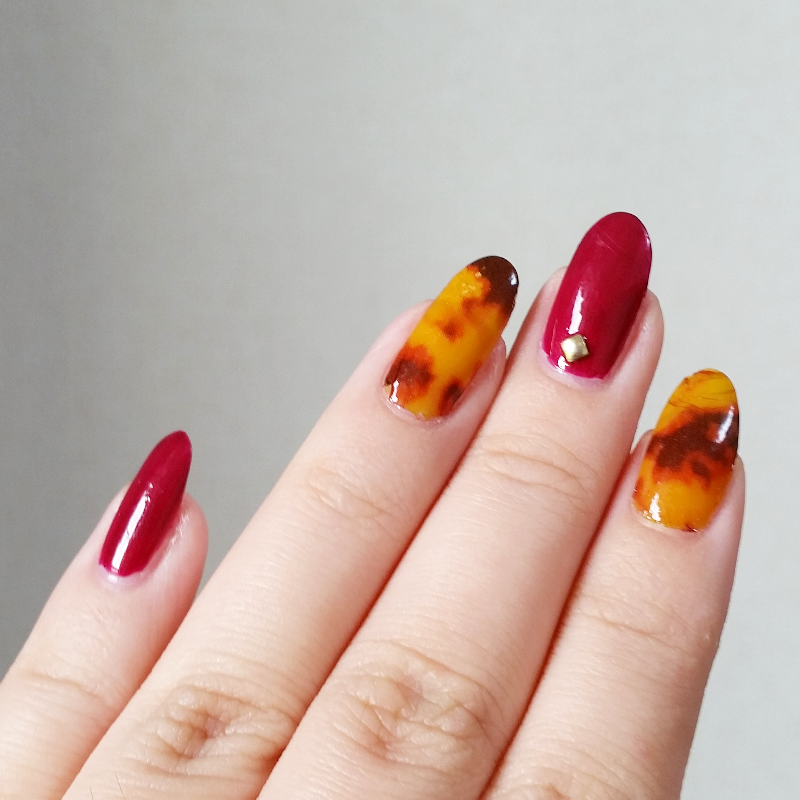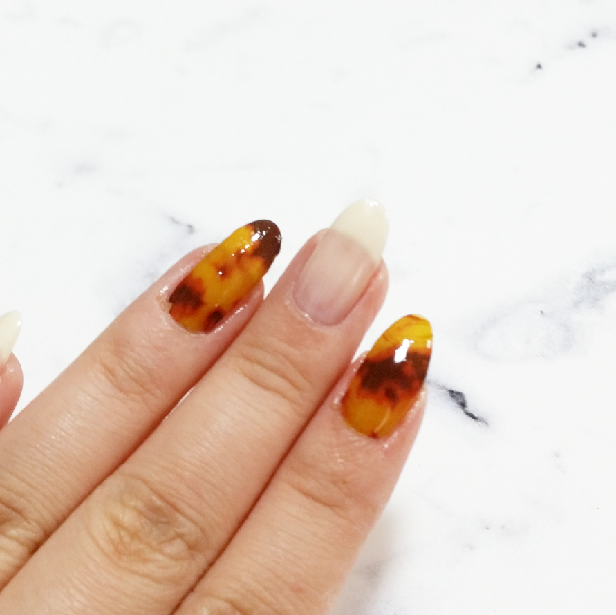 秋定番のべっ甲ネイルを100均商品でチャレンジしてみてください。