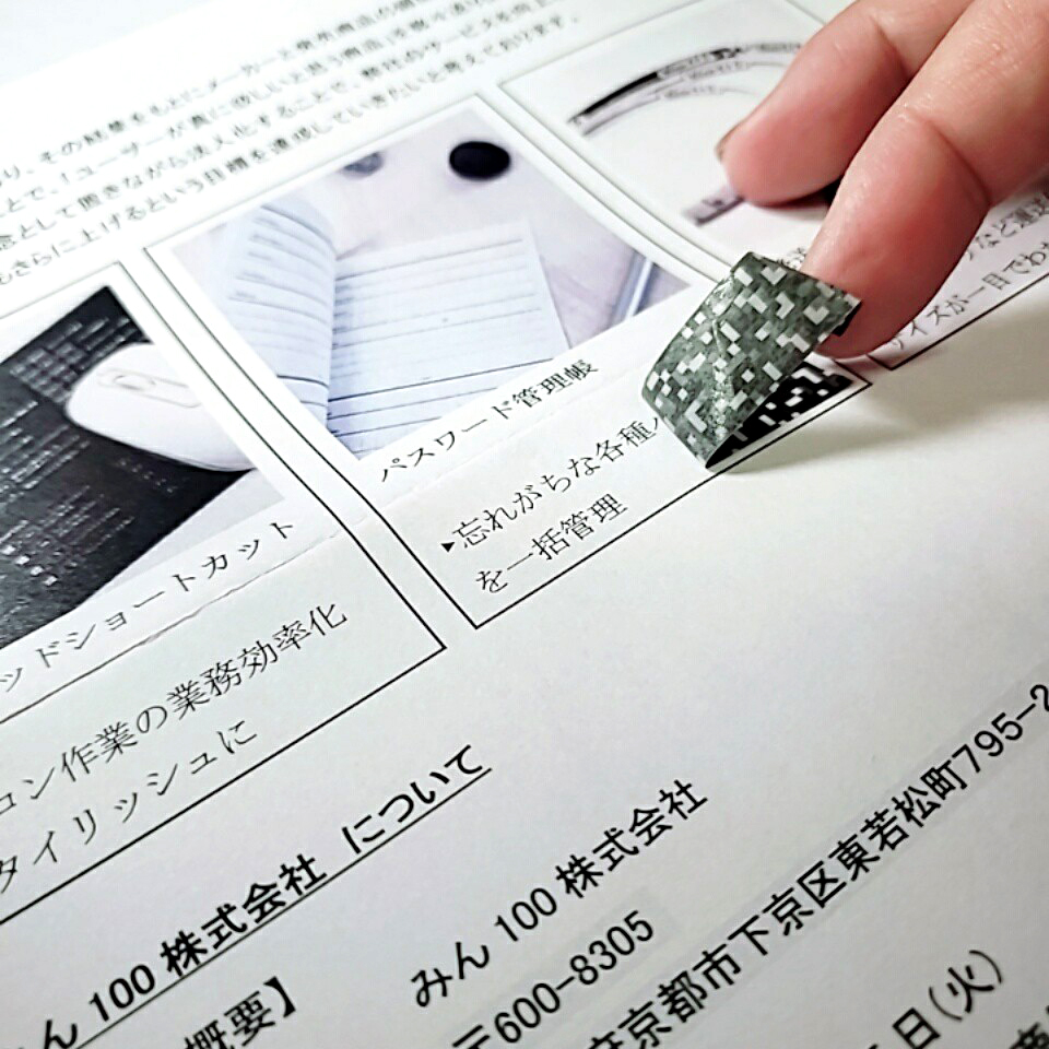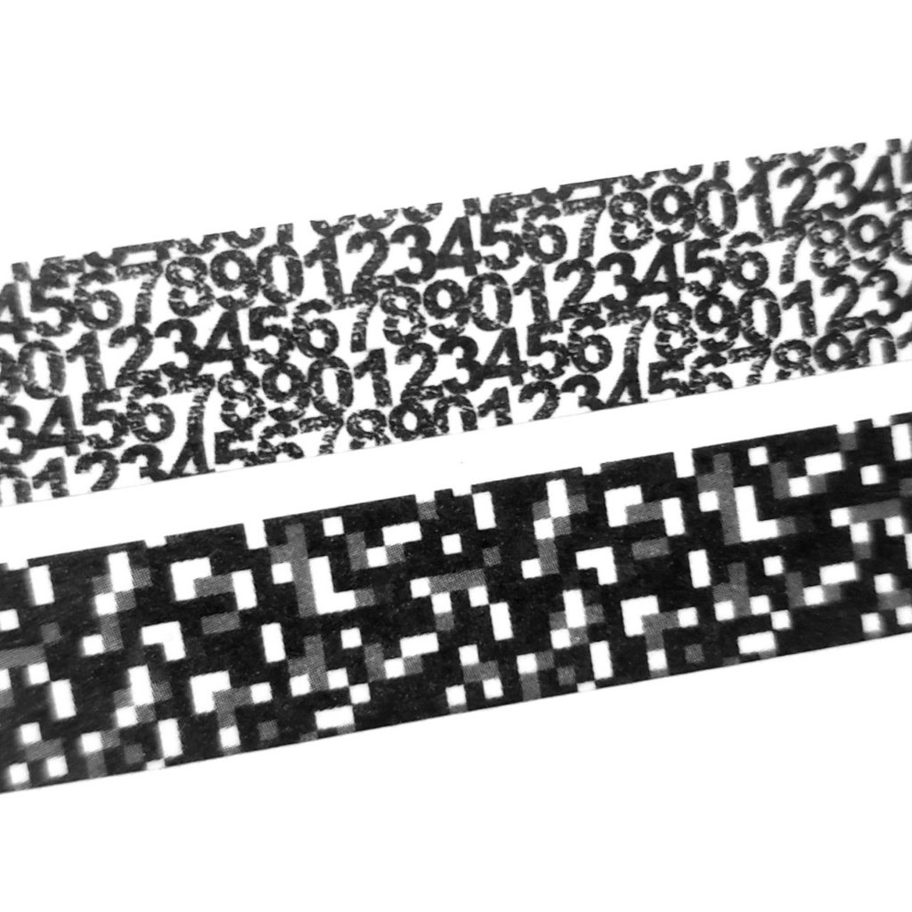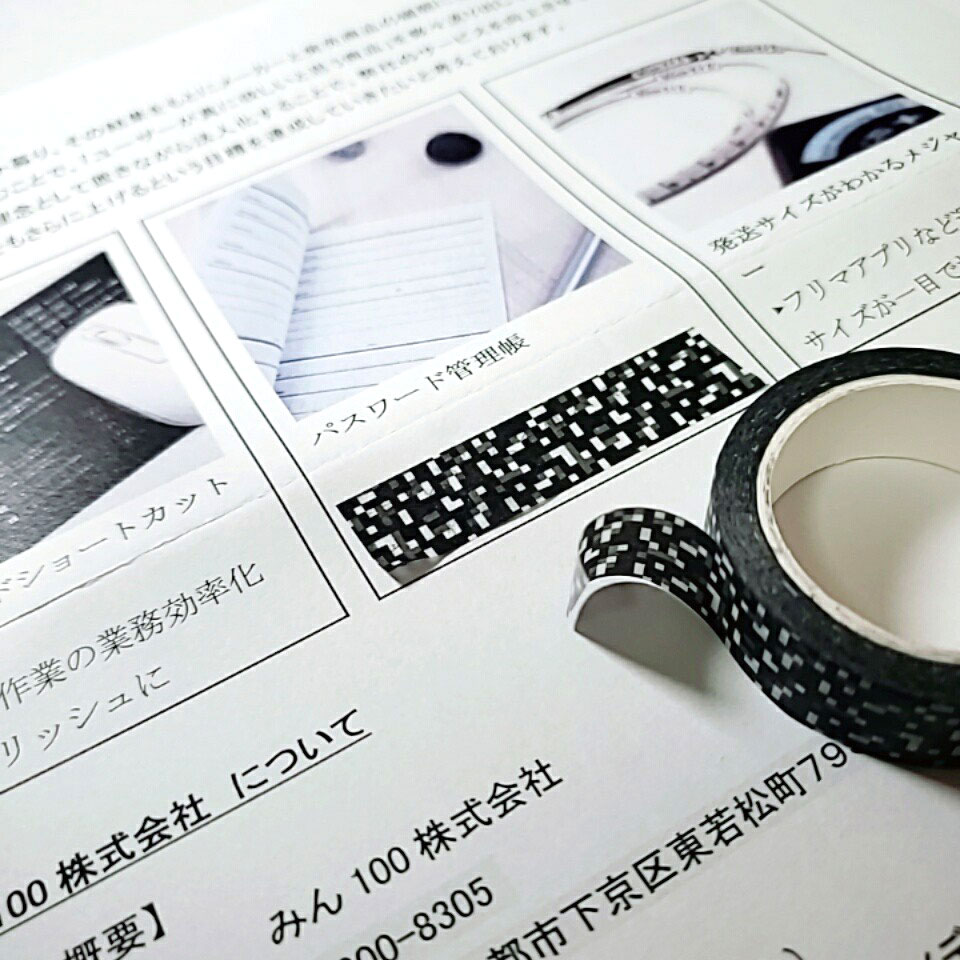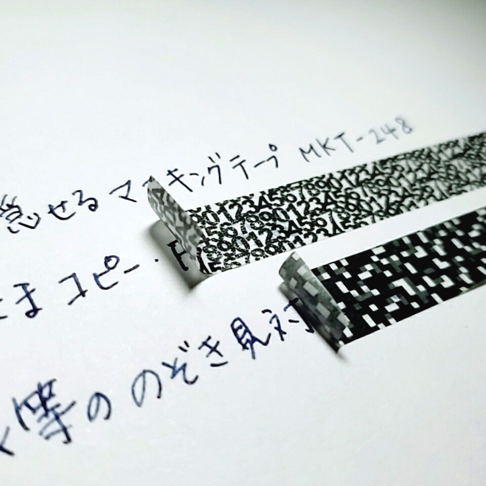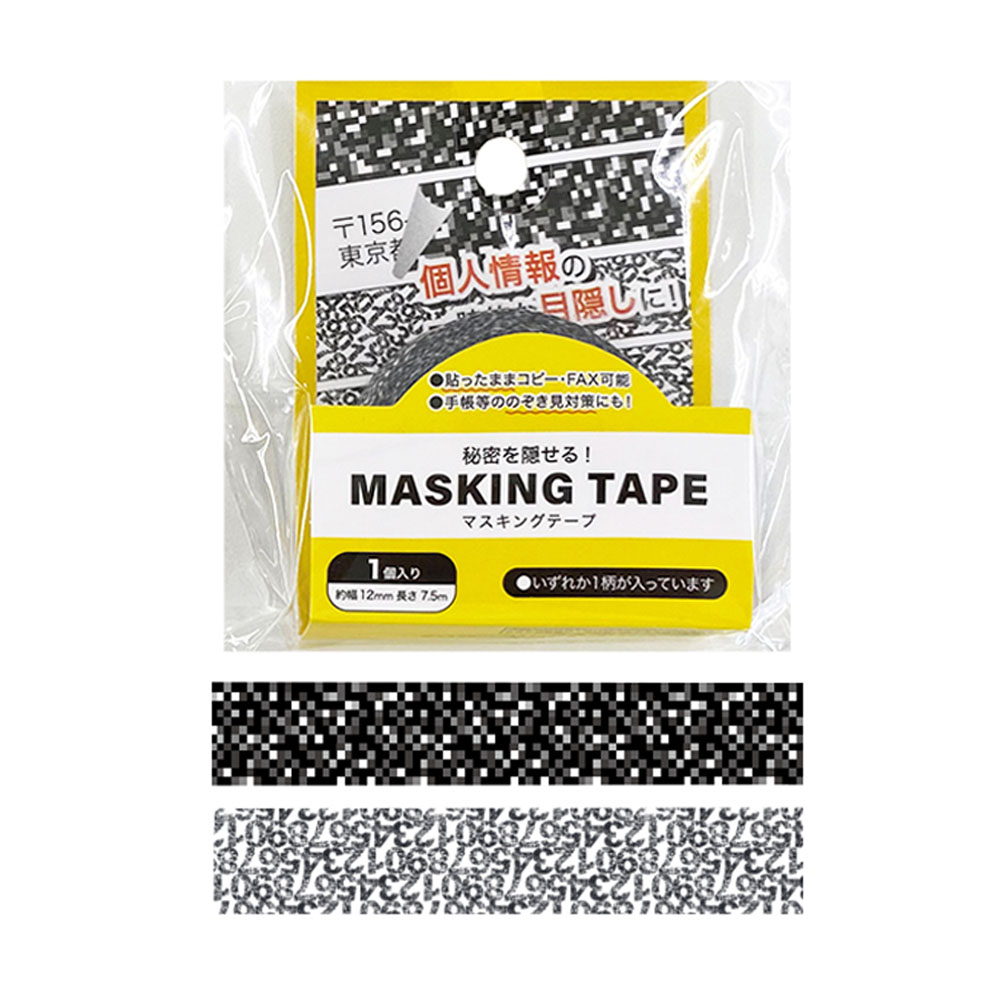 柄は定番のモザイク模様と数字の羅列の2種類。どちらもモノクロでスタイリッシュに、そして「隠したいものを隠す」という用途をはっきりさせたデザインにすることで、他の装飾用のマスキングテープとの違いを作りつつも、普段使いもしやすい商品となりました。