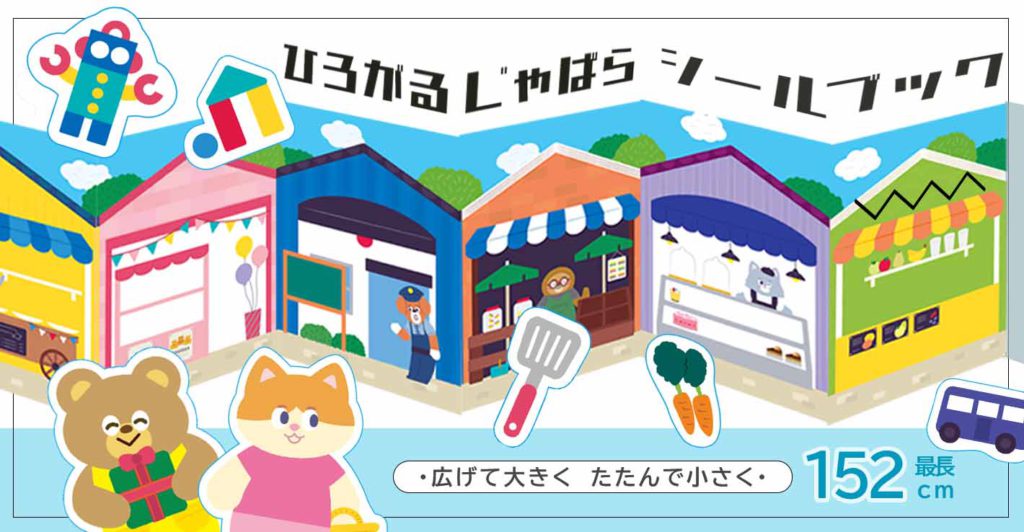 業界初(?)となる“ジャバラ型”シールブックで、広げても畳んでも遊べる新発想の商品です。