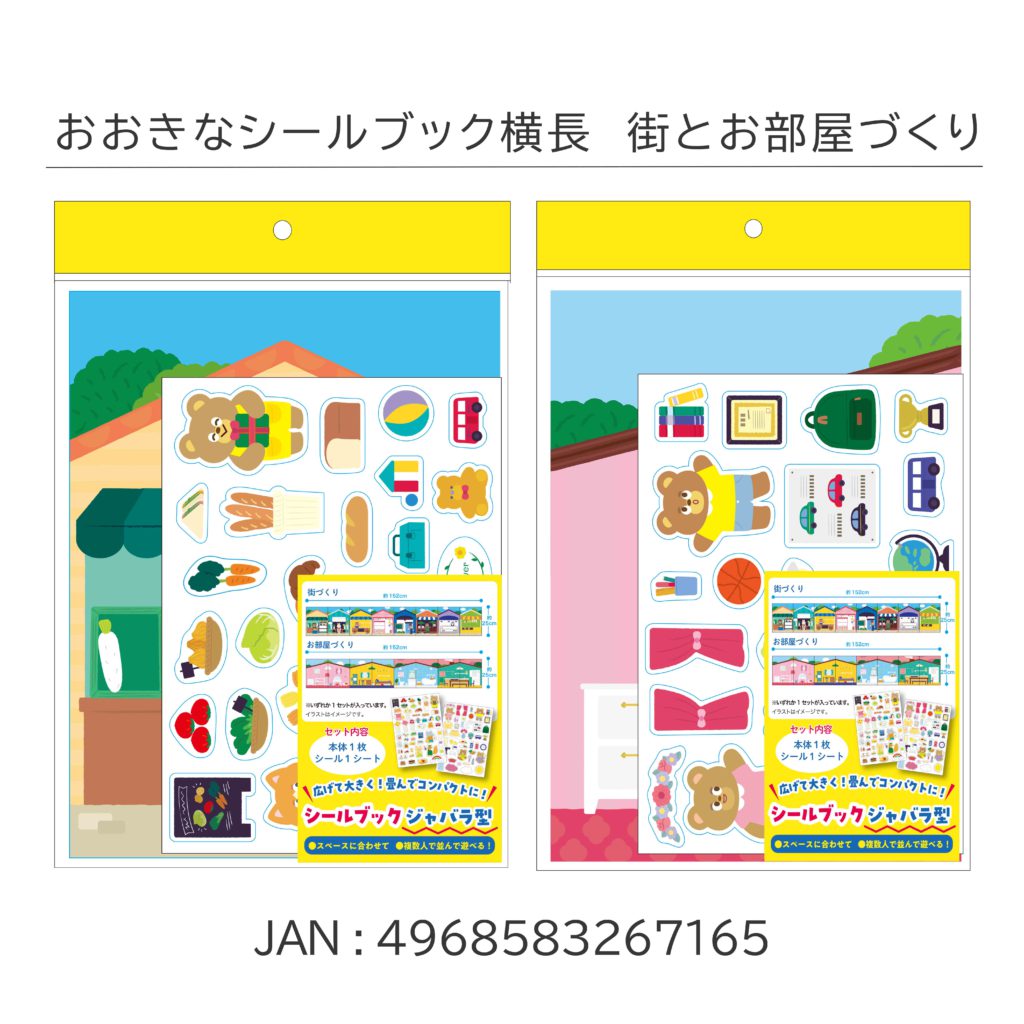 折りたためて広げても楽しい「大きなシールブック 横長 街とお部屋づくり」が新発売。