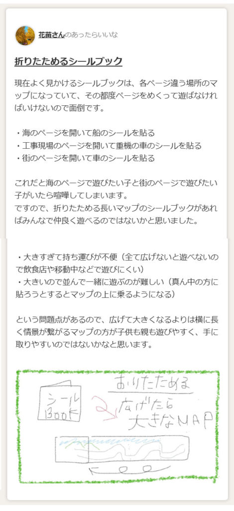 このシールブックは、「花苗」さんの投稿からはじまり多くのユーザーさんの声と、メーカーさんの知恵が集まって生まれた商品です。